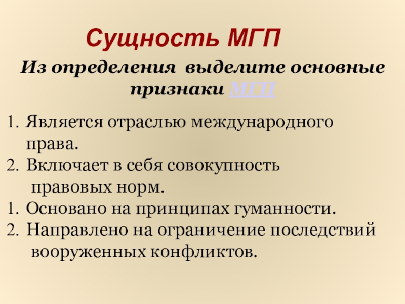 Из определения выделите основные признаки МГП