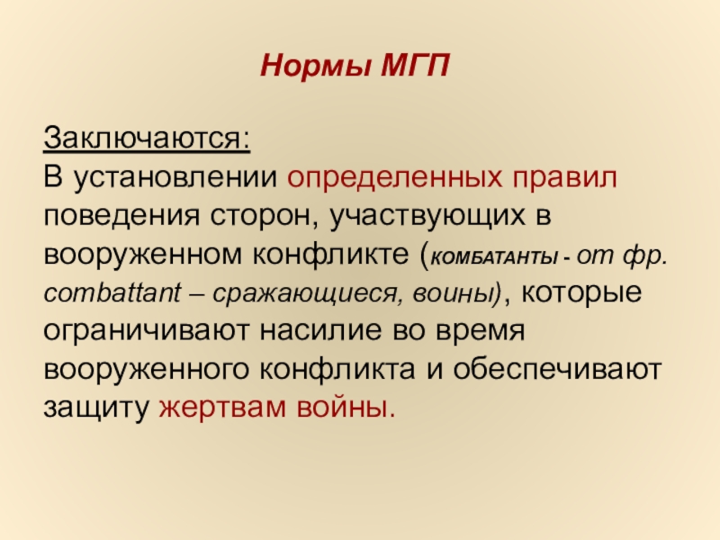 В установлении определенных правил поведения сторон, участвующих в вооруженном конфликте