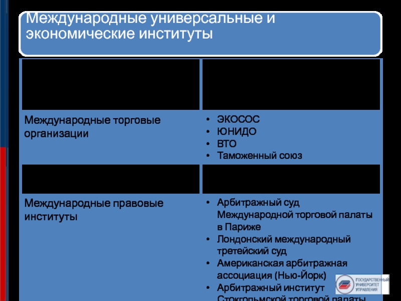 Слайд 1Международные универсальные и экономические институты