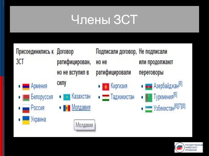 Слайд 37Зона свободной торговли СНГ
