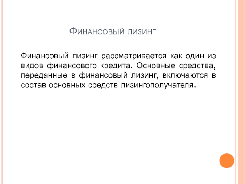 Финансовый лизинг рассматривается как один из видов финансового кредита.