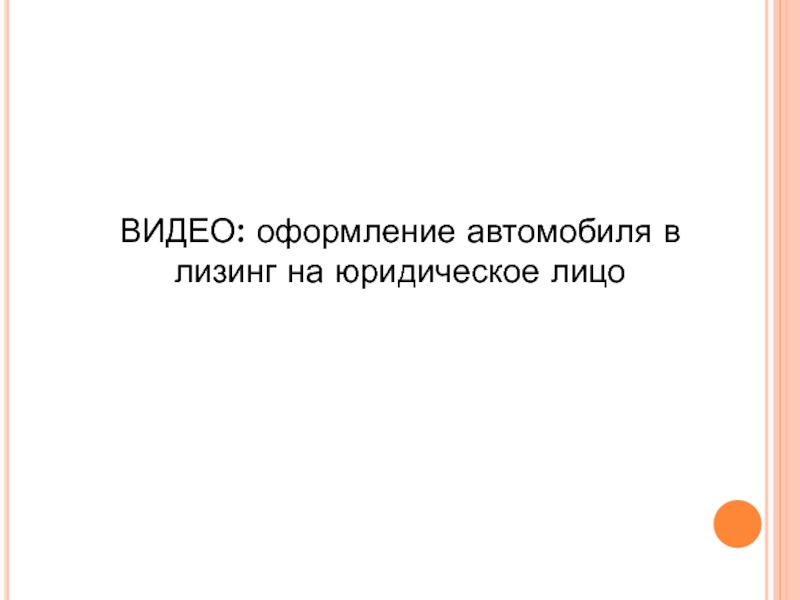 Слайд 12ВИДЕО: оформление автомобиля в лизинг на юридическое лицо