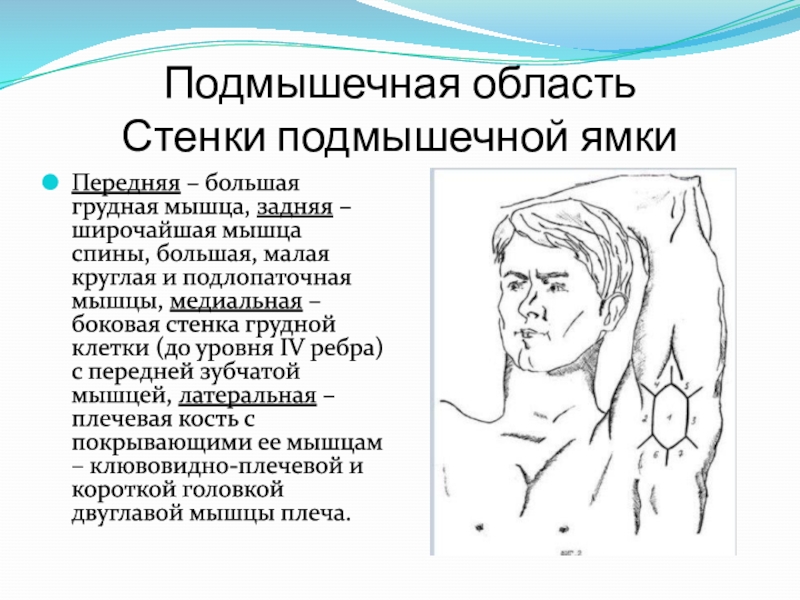 Слайд 9Подмышечная область Стенки подмышечной ямки