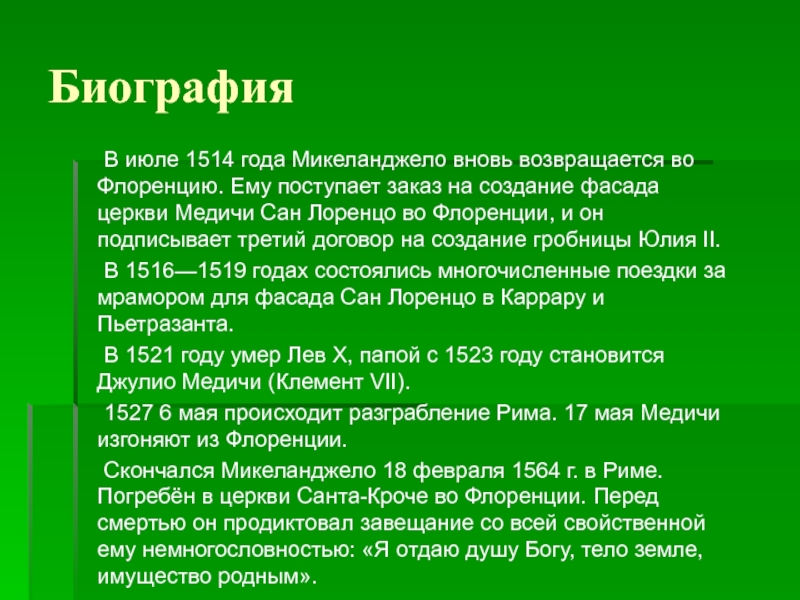 Сан Лоренцо во Флоренции, и он подписывает третий договор на создание гробницы Юлия II.