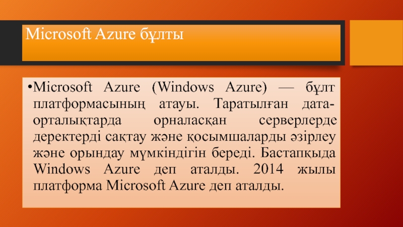 Microsoft Azure (Windows Azure) — бұлт платформасының атауы.