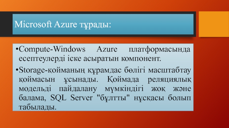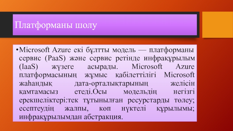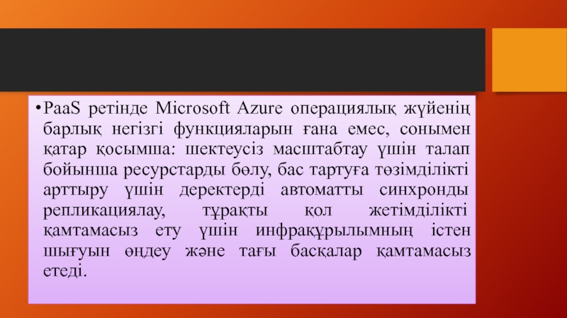 Слайд 6PaaS ретінде Microsoft Azure операциялық жүйенің барлық негізгі функцияларын ғана