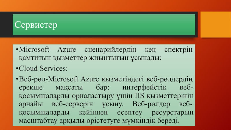 Microsoft Azure сценарийлердің кең спектрін қамтитын қызметтер жиынтығын ұсынады: