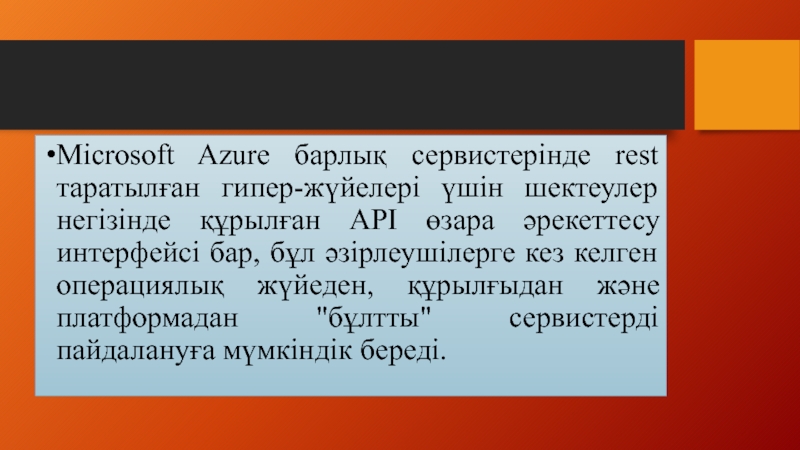 Слайд 10Microsoft Azure барлық сервистерінде rest таратылған гипер-жүйелері үшін шектеулер негізінде