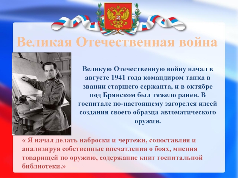 « Я начал делать наброски и чертежи, сопоставляя и анализируя собственные впечатления о боях, мнения товарищей по оружию, содержание книг госпитальной библиотеки.»