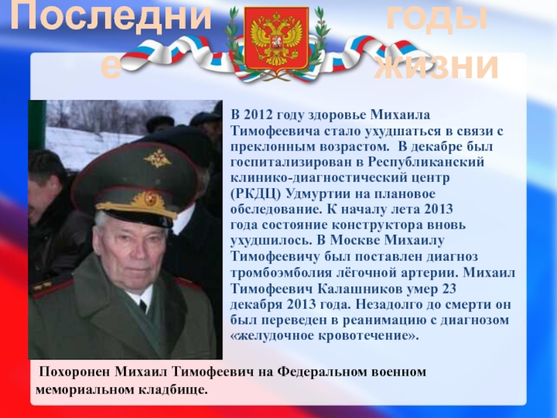 Похоронен Михаил Тимофеевич на Федеральном военном мемориальном кладбище.