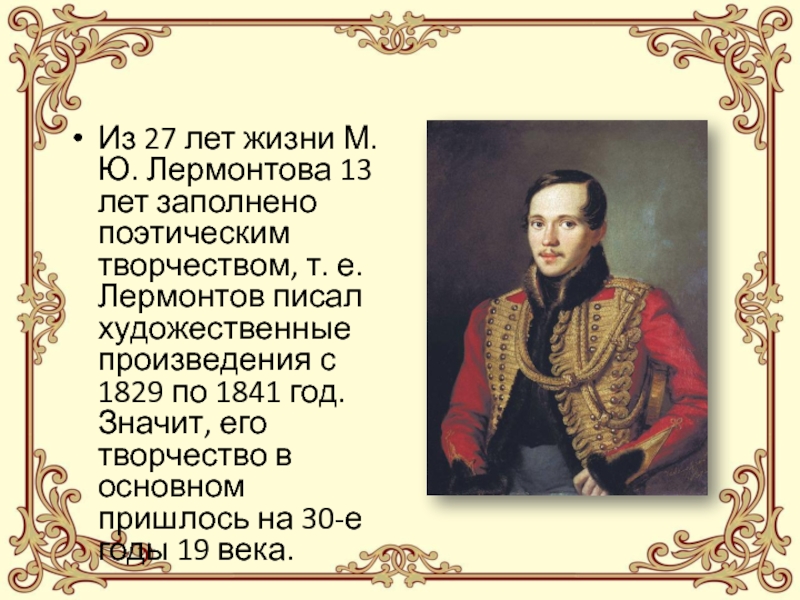 Слайд 5Из 27 лет жизни М. Ю. Лермонтова 13 лет заполнено