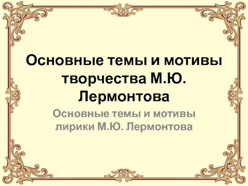 Слайд 2Основные темы и мотивы творчества М.Ю. Лермонтова