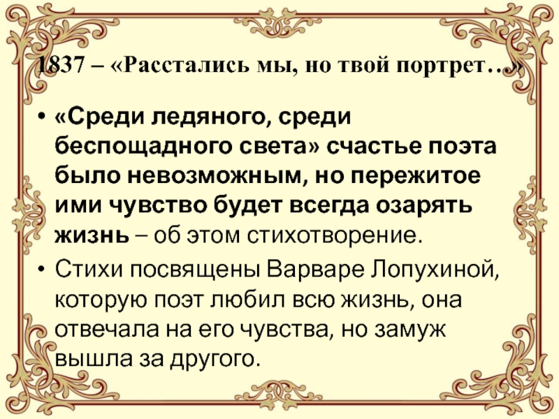 Слайд 551837 – «Расстались мы, но твой портрет…»