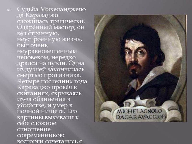Микеланджело Караваджо «Святой Матфей и ангел» 1599