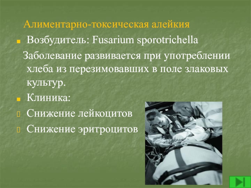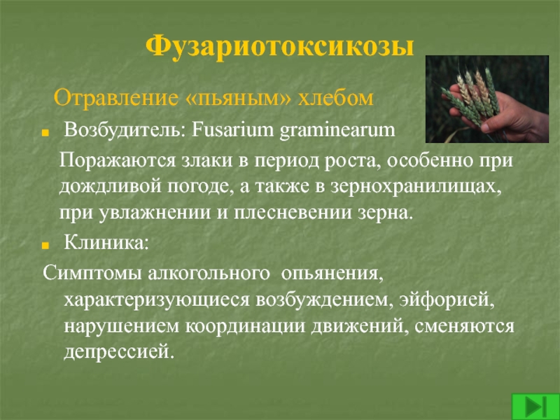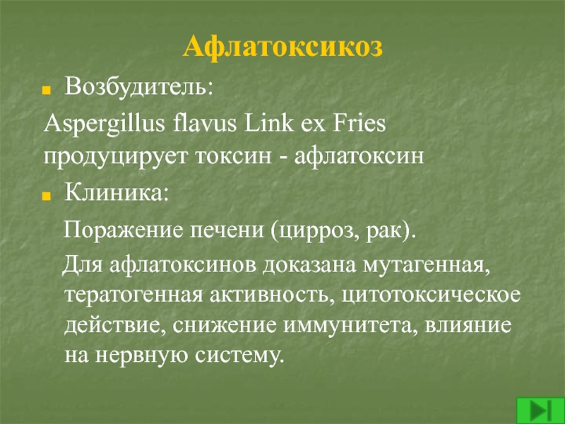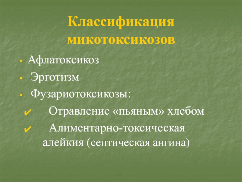 попаданием в организм микотоксинов, которые образуются в процессе жизнедеятельности ряда
