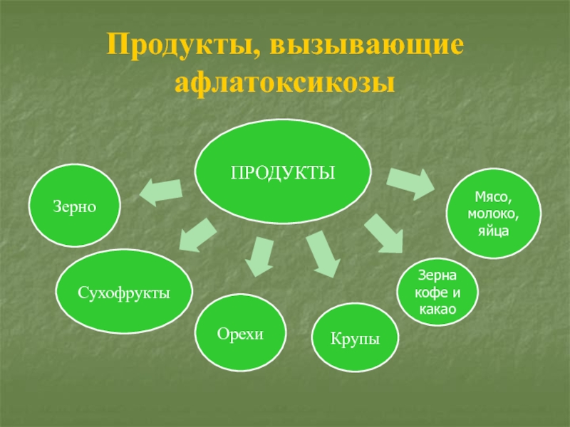Слайд 5Продукты, вызывающие афлатоксикозы