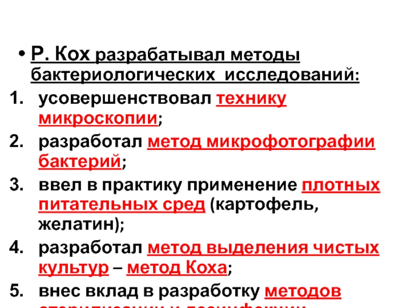Слайд 19Р. Кох разрабатывал методы бактериологических исследований:
