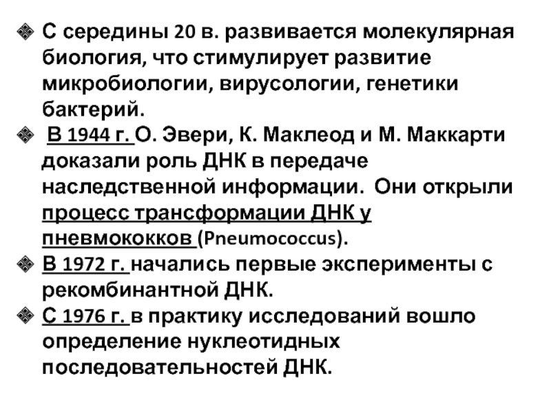 Слайд 23С середины 20 в. развивается молекулярная биология, что стимулирует развитие