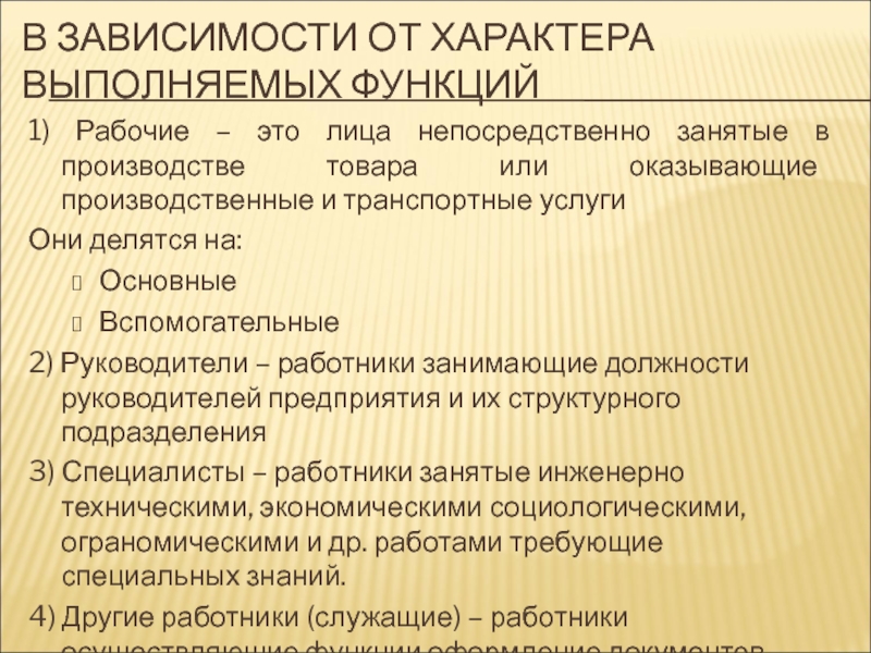 4) Другие работники (служащие) – работники осуществляющие функции оформление документов, учета , контроля, и хозяйственного обслуживания.