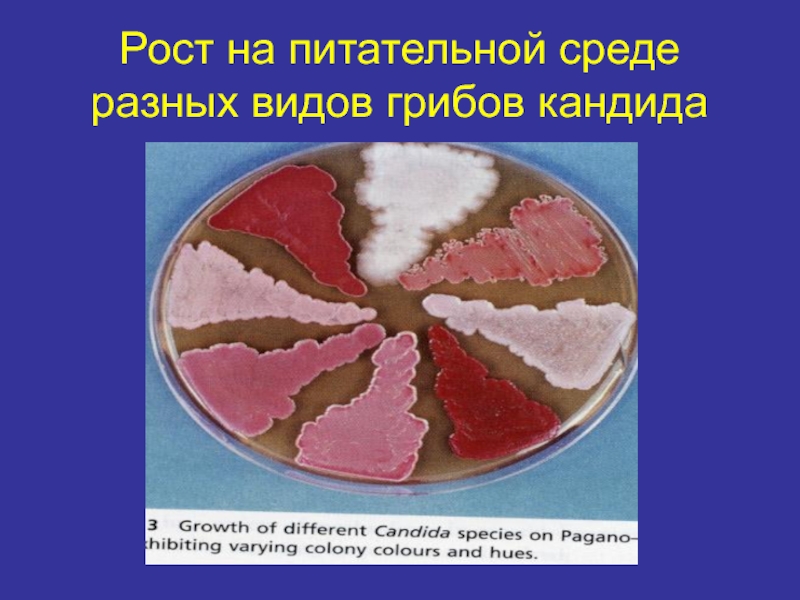 Слайд 37Рост на питательной среде разных видов грибов кандида