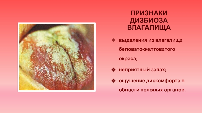 Слайд 8ПРИЗНАКИ ДИЗБИОЗА ВЛАГАЛИЩА