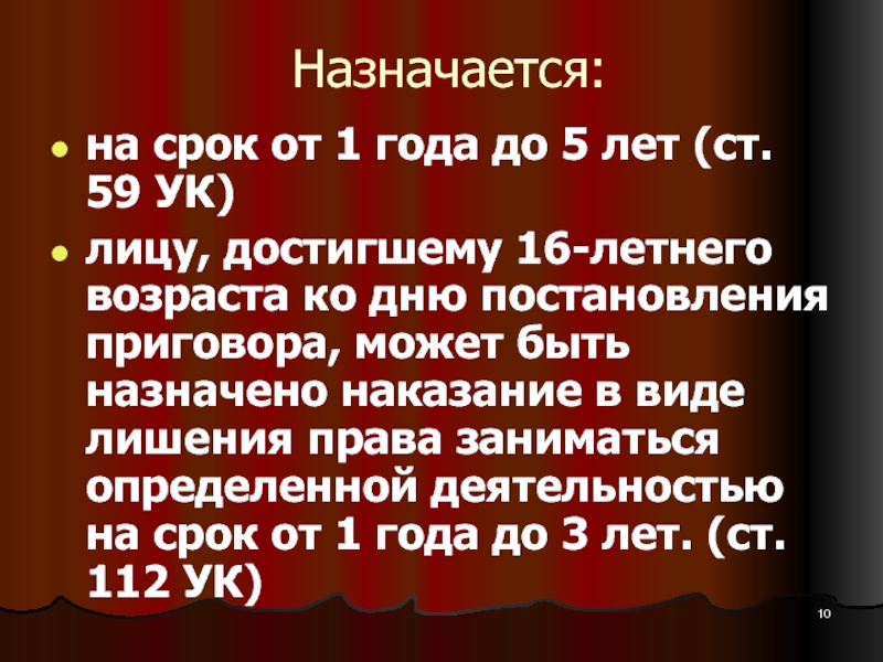 Слайд 12со дня освобождения осужденного от отбывания наказания (при назначении данного