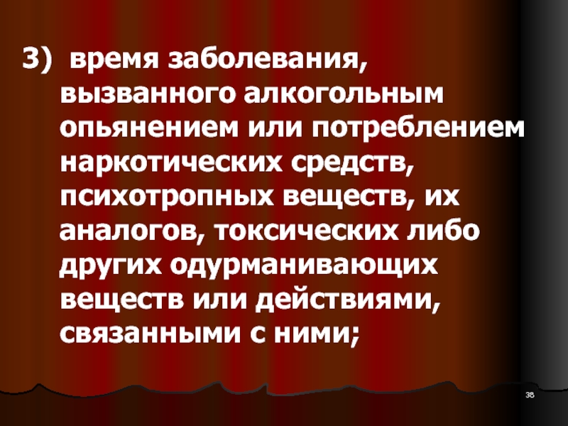 3) время заболевания, вызванного алкогольным опьянением или потреблением наркотических