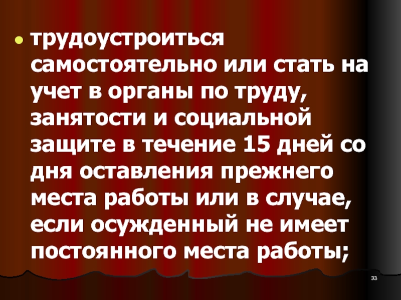 Слайд 33трудоустроиться самостоятельно или стать на учет в органы по труду,