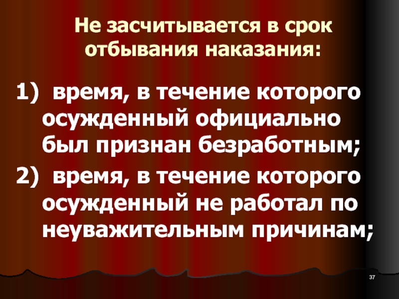Слайд 37Не засчитывается в срок отбывания наказания: