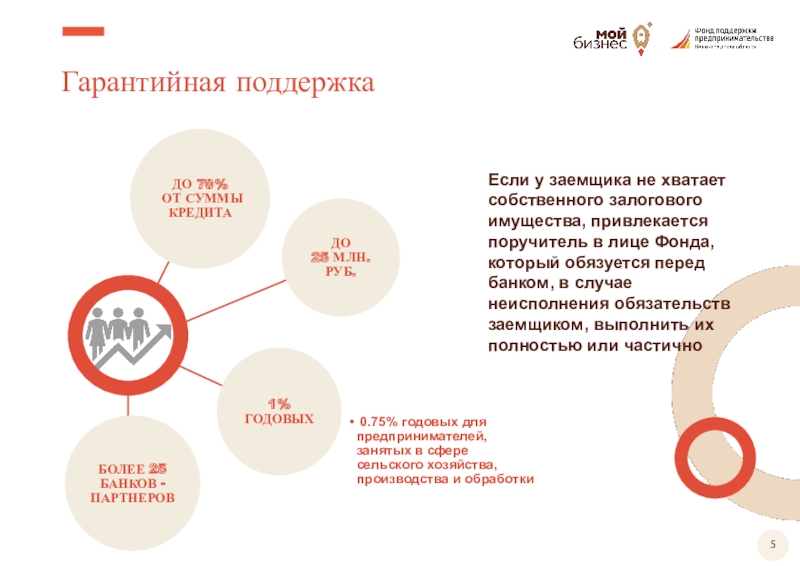 Если у заемщика не хватает собственного залогового имущества, привлекается поручитель в лице Фонда, который обязуется перед банком, в случае неисполнения обязательств заемщиком, выполнить их полностью или частично