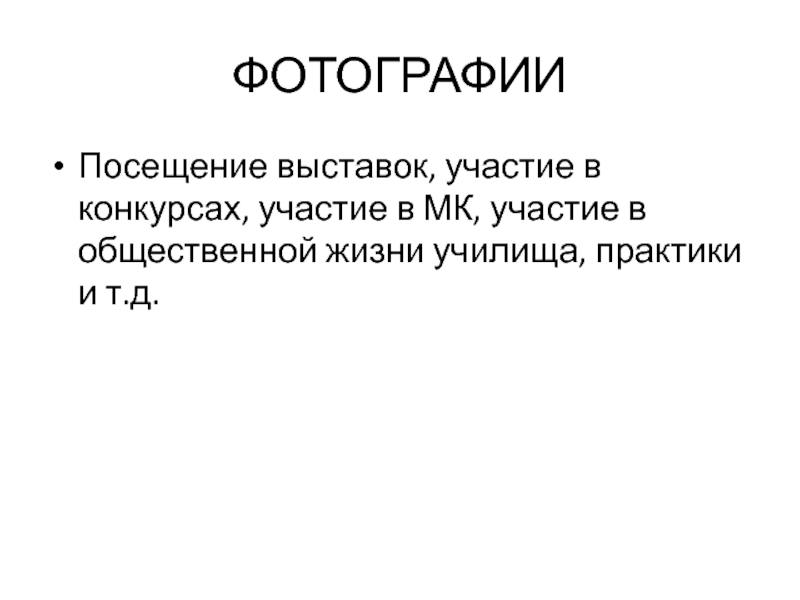 ФОТОГРАФИИПосещение выставок, участие в конкурсах, участие в МК, участие в общественной жизни училища, практики и т.д.