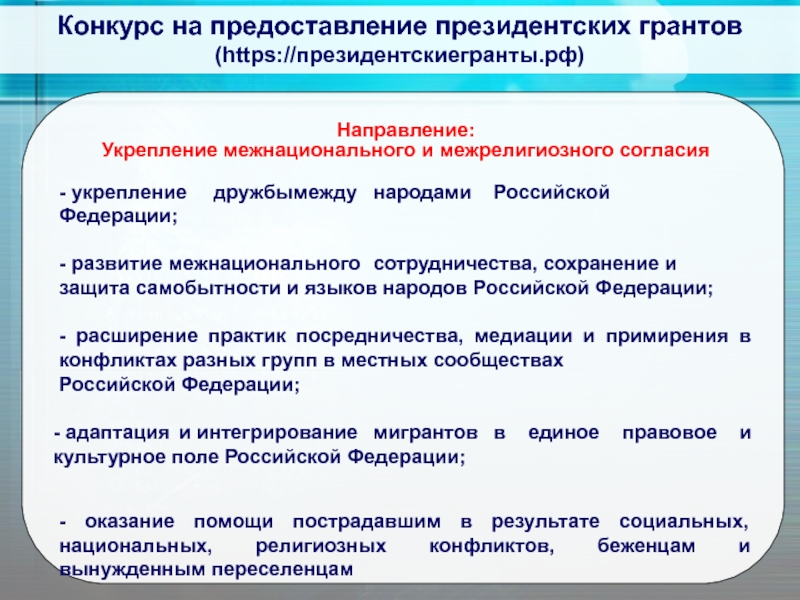 Поддерживаются комплексные проекты по следующим видам социально ориентированной деятельности: