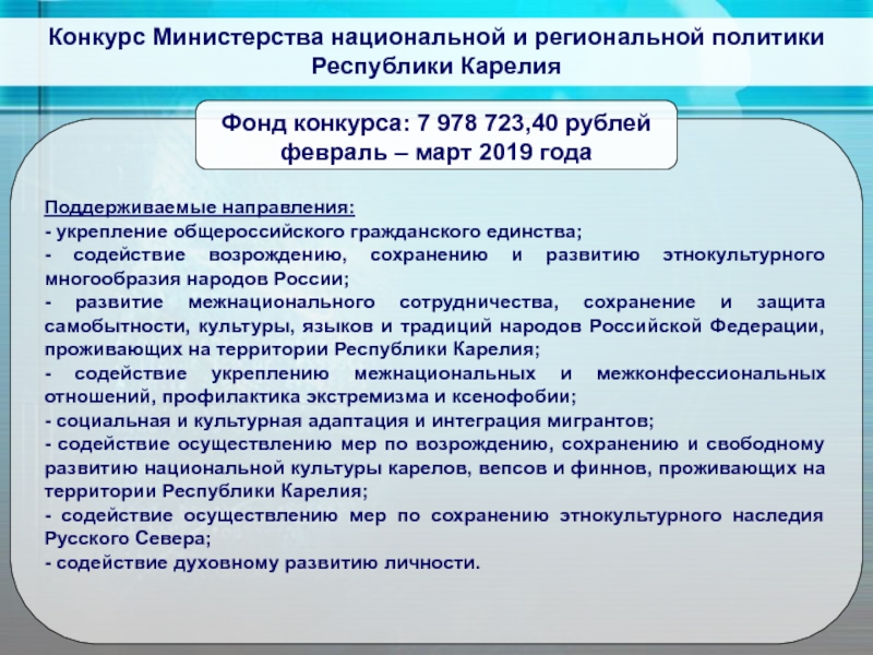и свободному развитию национальной культуры карелов, вепсов финнов, проживающих на территории Республики Карелия;