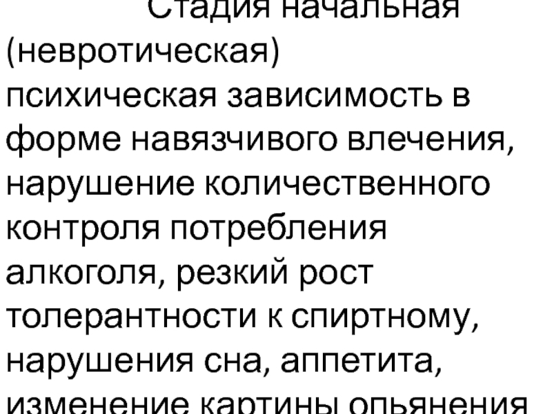 Слайд 4Стадия начальная (невротическая) психическая зависимость в форме
