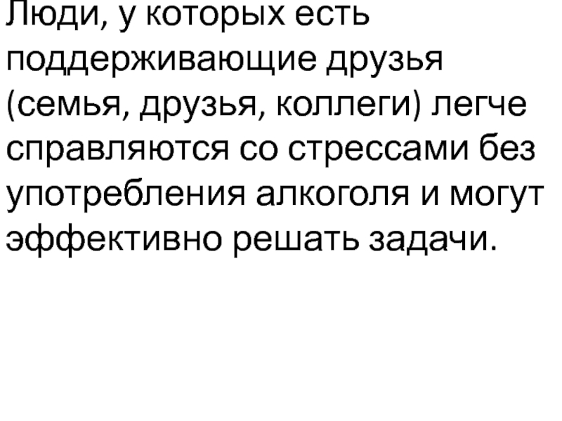 Слайд 12Люди, у которых есть поддерживающие друзья (семья, друзья, коллеги) легче