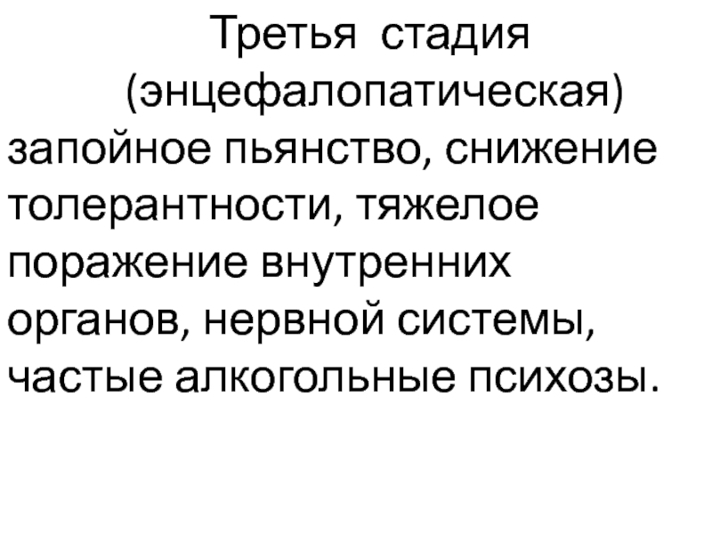 запойное пьянство, снижение толерантности, тяжелое поражение внутренних органов,