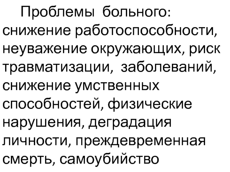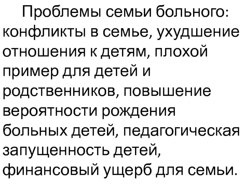 Слайд 8Проблемы семьи больного: конфликты в семье, ухудшение