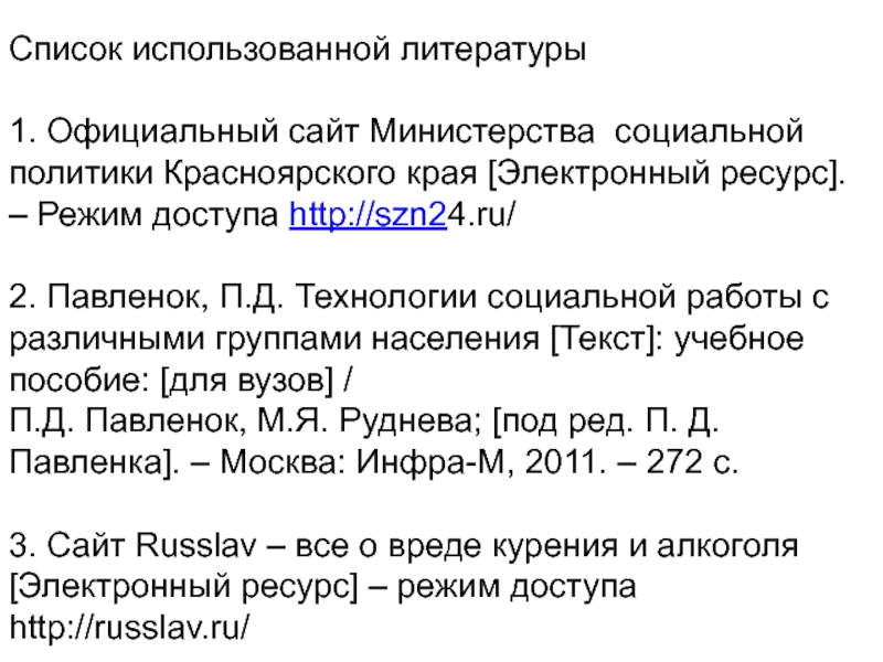3. Сайт Russlav – все о вреде курения и алкоголя [Электронный ресурс] – режим доступа http://russlav.ru/