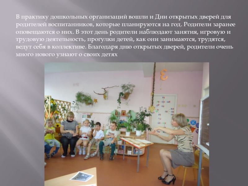 Слайд 9В практику дошкольных организаций вошли и Дни открытых дверей для