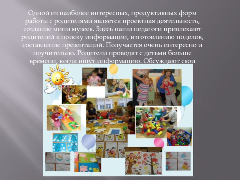 проектная деятельность, создание мини музеев. Здесь наши педагоги привлекают родителей