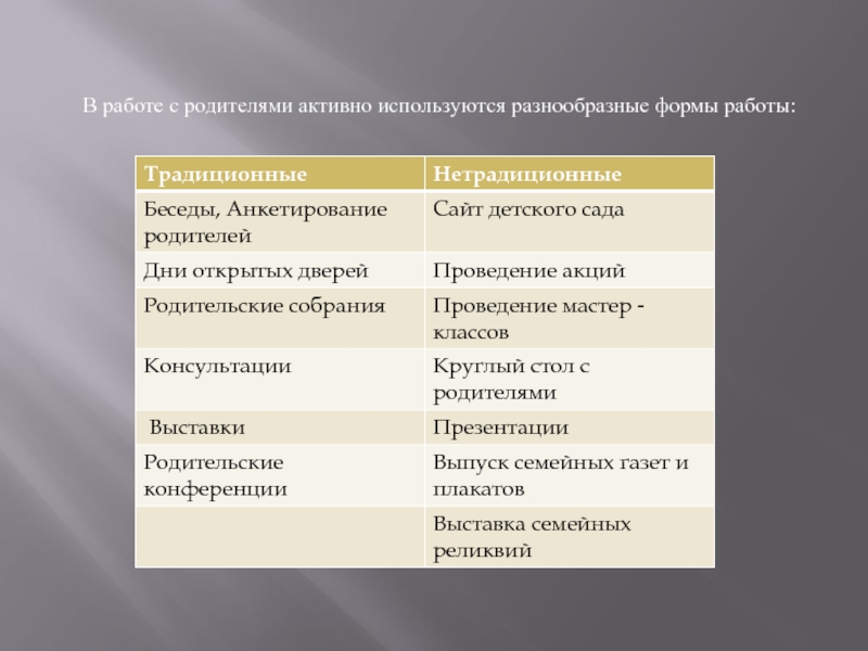 Слайд 5В работе с родителями активно используются разнообразные формы работы: