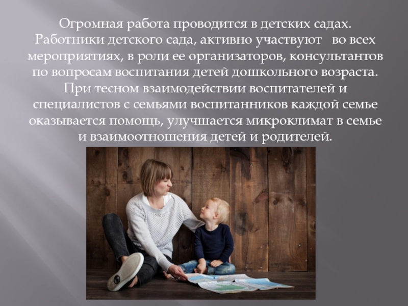Слайд 12Огромная работа проводится в детских садах. Работники детского сада, активно