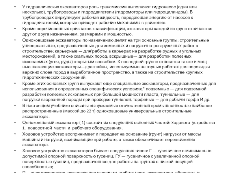 В настоящем учебнике описаны выпускаемые отечественной промышленностью наиболее распространенные (массой до 22 т) одноковшовые универсальные строительные экскаваторы.