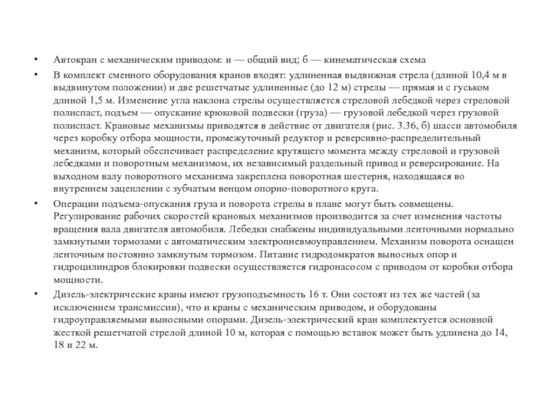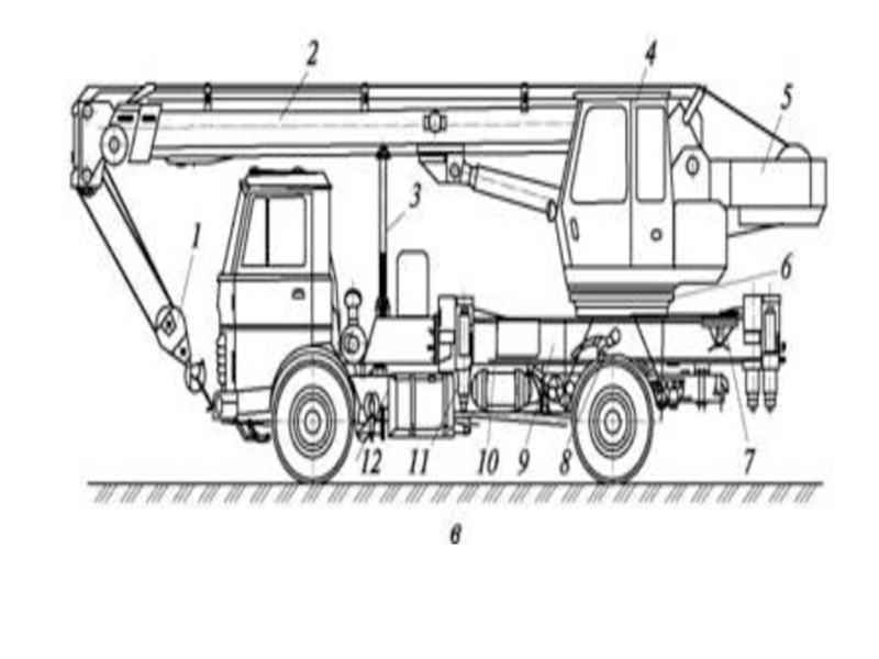 Слайд 20Автокран с механическим приводом: и — общий вид; б —