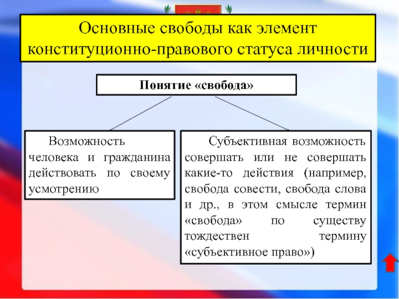 Слайд 12Основные свободы как элемент конституционно-правового статуса личности