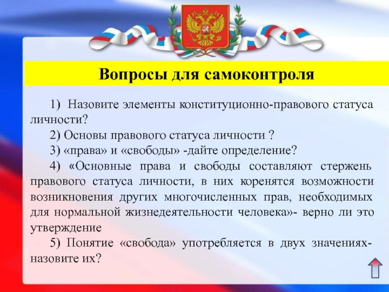 7) Вопросы для самоконтроля на тему: «Понятие правового статуса личности»