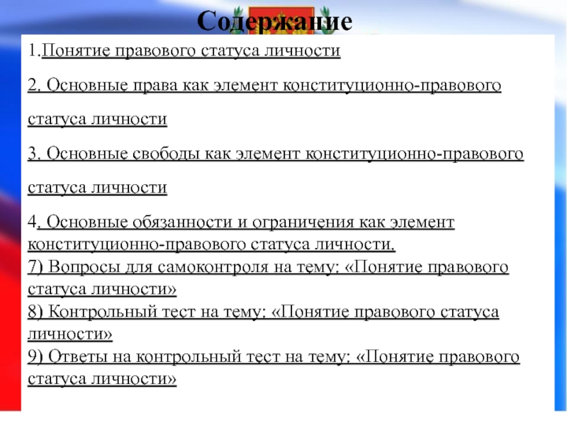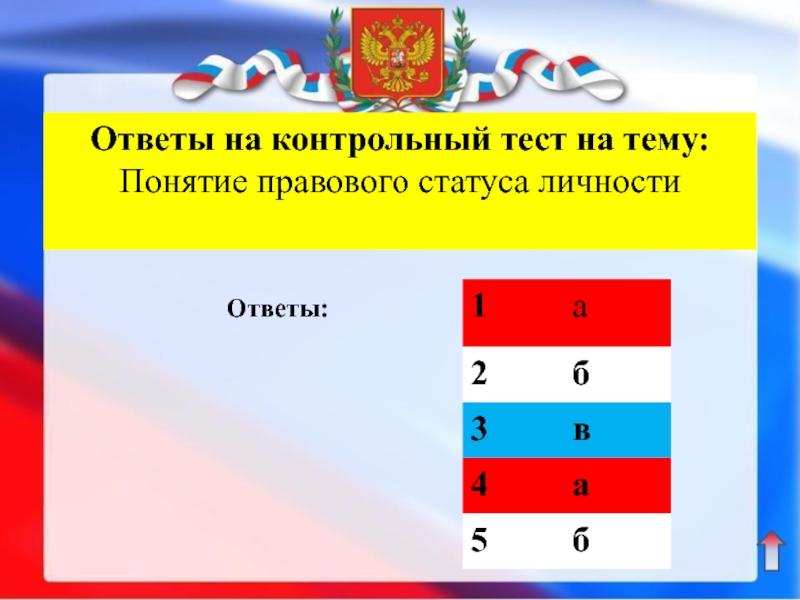 9) Ответы на контрольный тест на тему: «Понятие правового статуса личности»