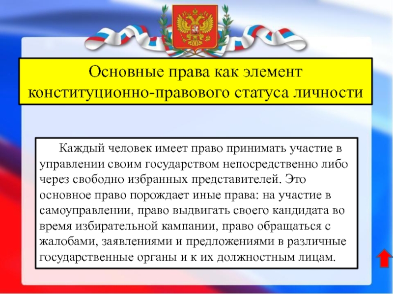 Слайд 8Основные права как элемент конституционно-правового статуса личности