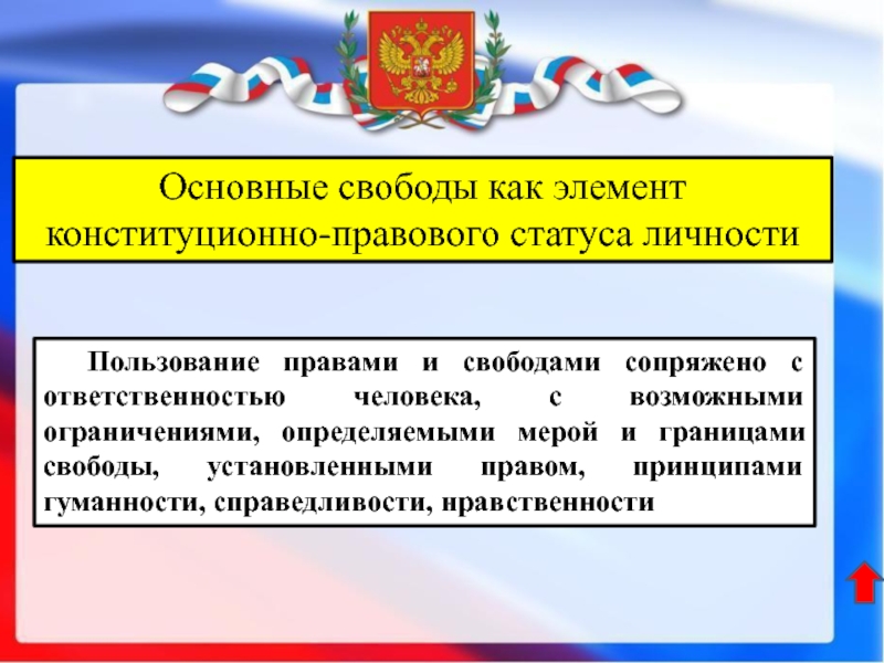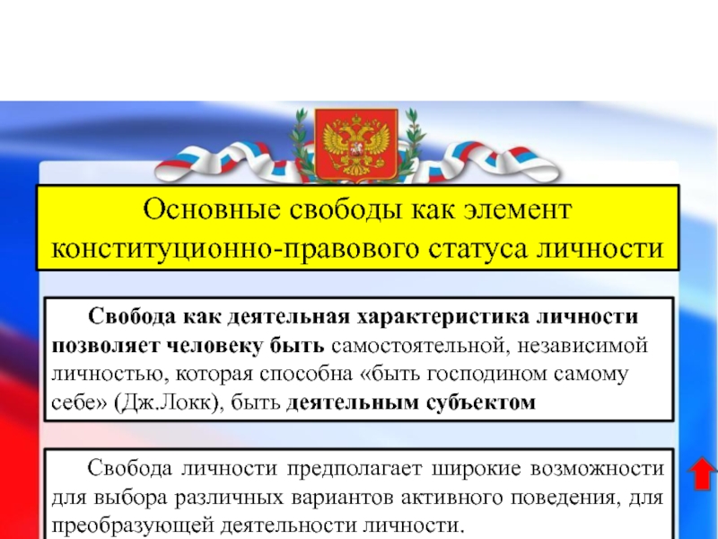 Слайд 10Основные свободы как элемент конституционно-правового статуса личности