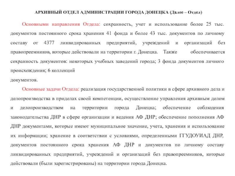 Глава 2. ХАРАКТЕРИСТИКА ДЕЯТЕЛЬТНОСТИ АРХИВНОГО ОТДЕЛА АДМИНИСТРАЦИИ ГОРОДА ДОНЕЦКА